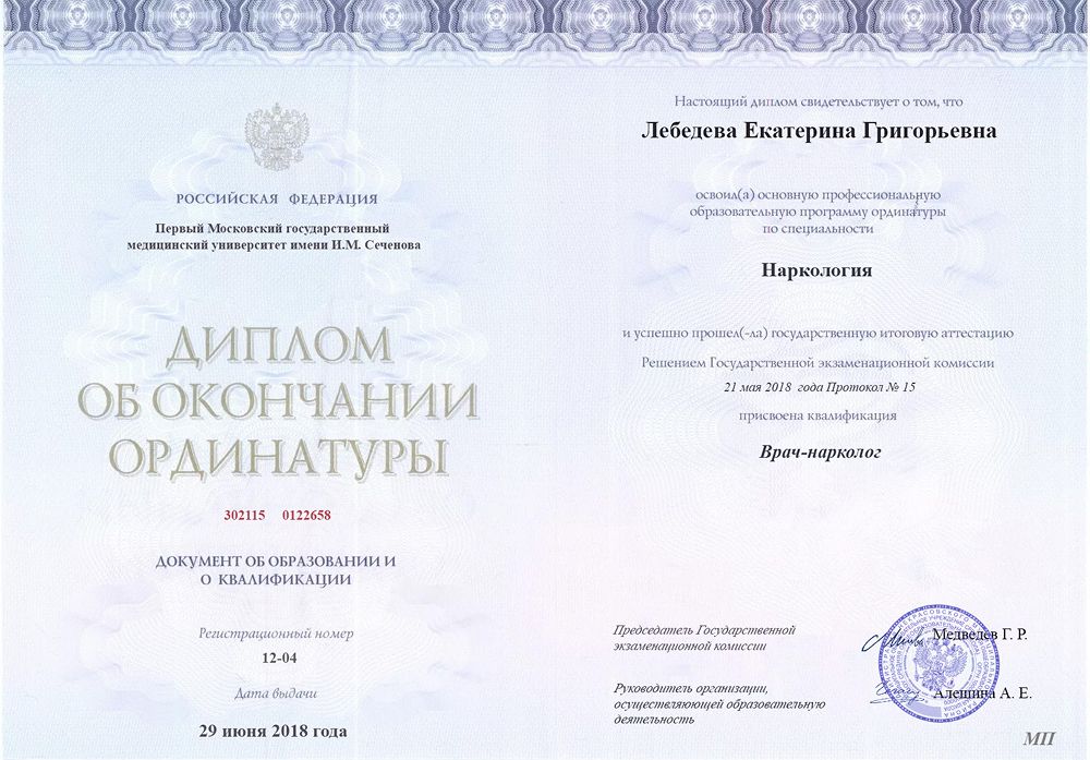 Врач-нарколог Лебедева Екатерина Григорьевна с 8-летним стажем специализируется на комплексном лечении алкогольной, наркотической, никотиновой и игровой зависимостей, используя доказательные методы: мотивационное консультирование, когнитивно-поведенческую терапию, фармакотерапию и программы реабилитации. Проводит диагностику и коррекцию сопутствующих состояний. Индивидуальный подход, конфиденциальность и долгосрочная поддержка — основа работы с каждым пациентом.